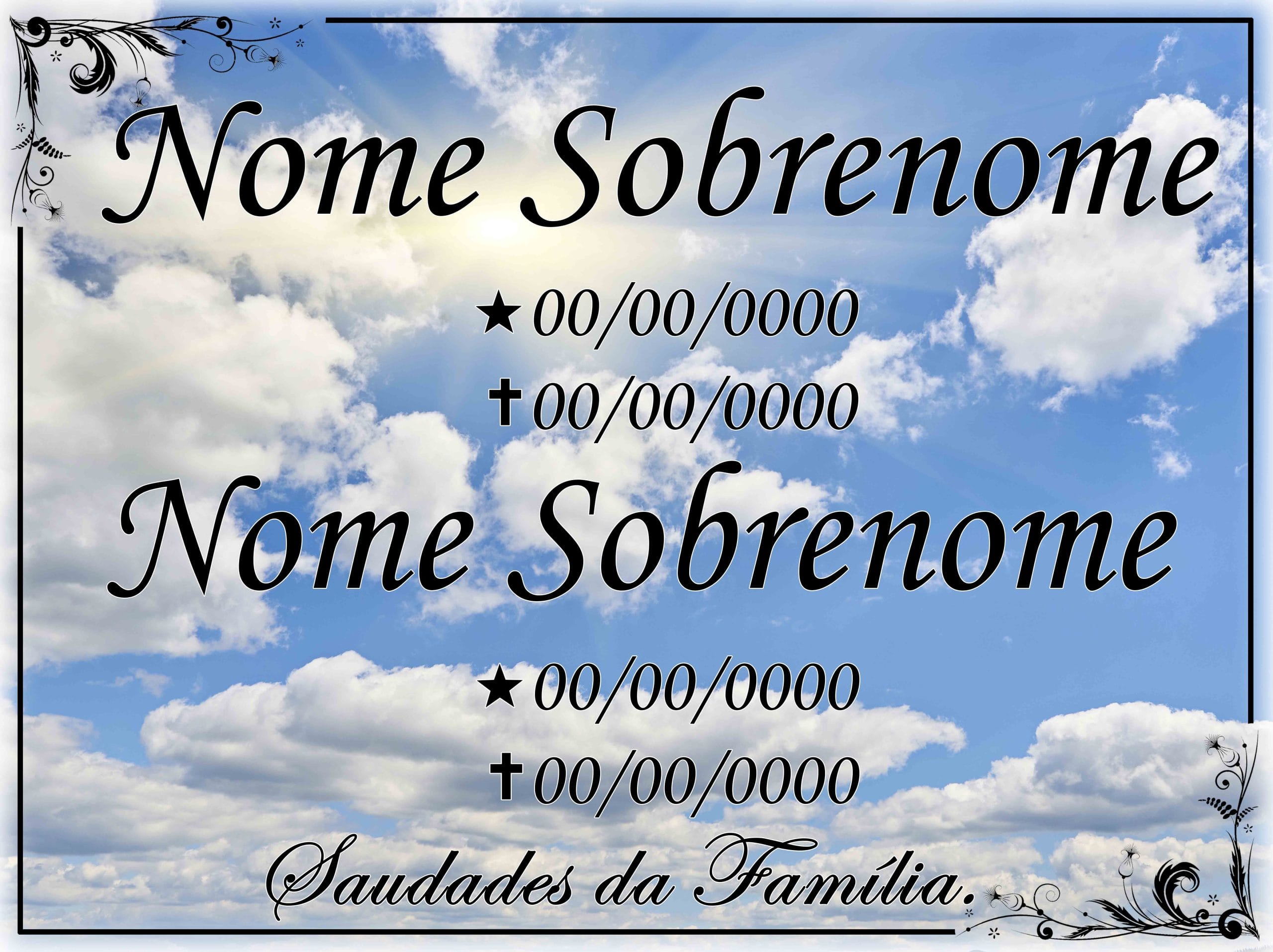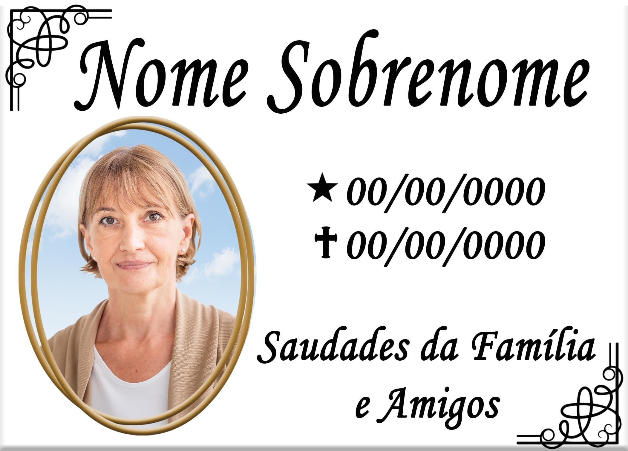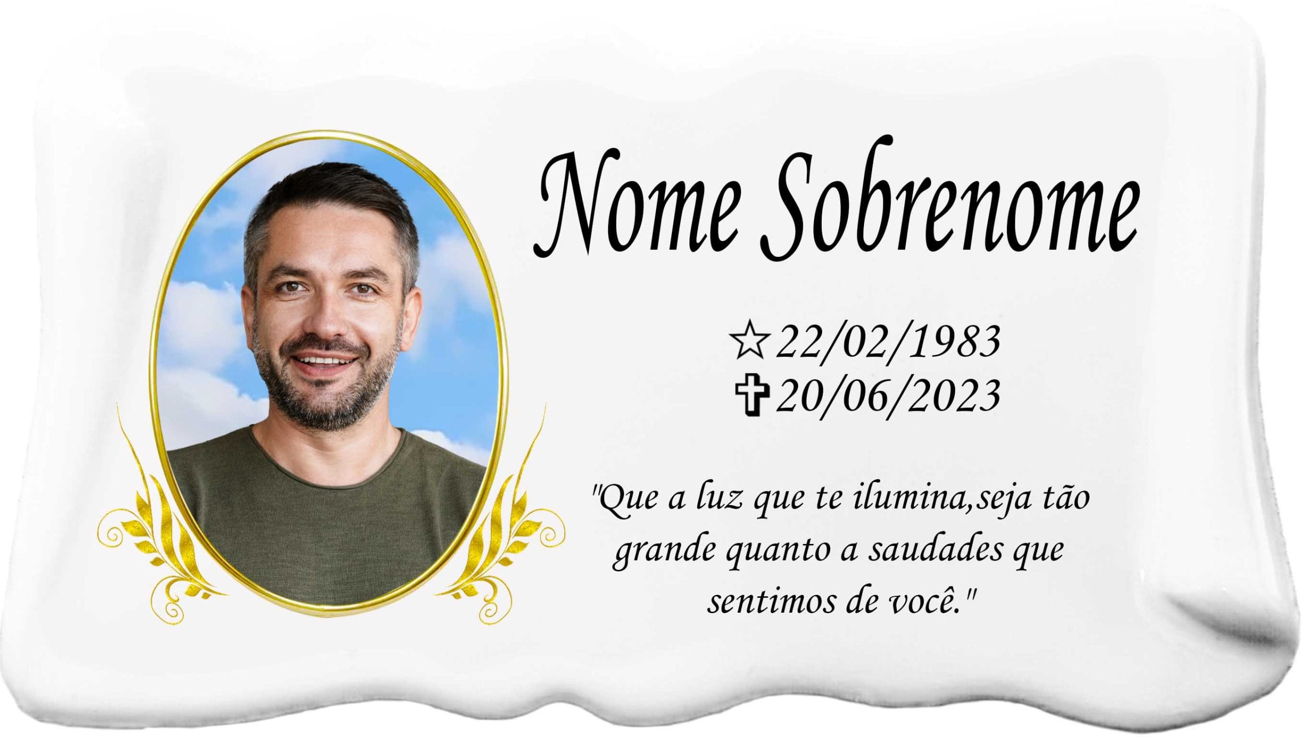 Depois de definir o modelo, basta nos enviar a foto, nome e sobrenome, datas de nascimento e falecimento, além de uma frase ou mensagem de homenagem. Você pode escolher um dos nossos modelos ou criar o seu próprio texto. Após isso, enviaremos uma amostra virtual para sua aprovação.