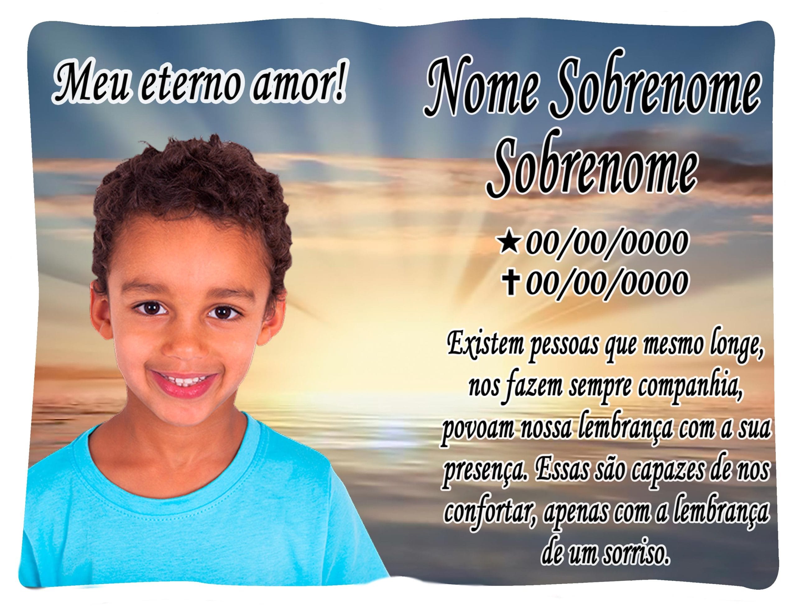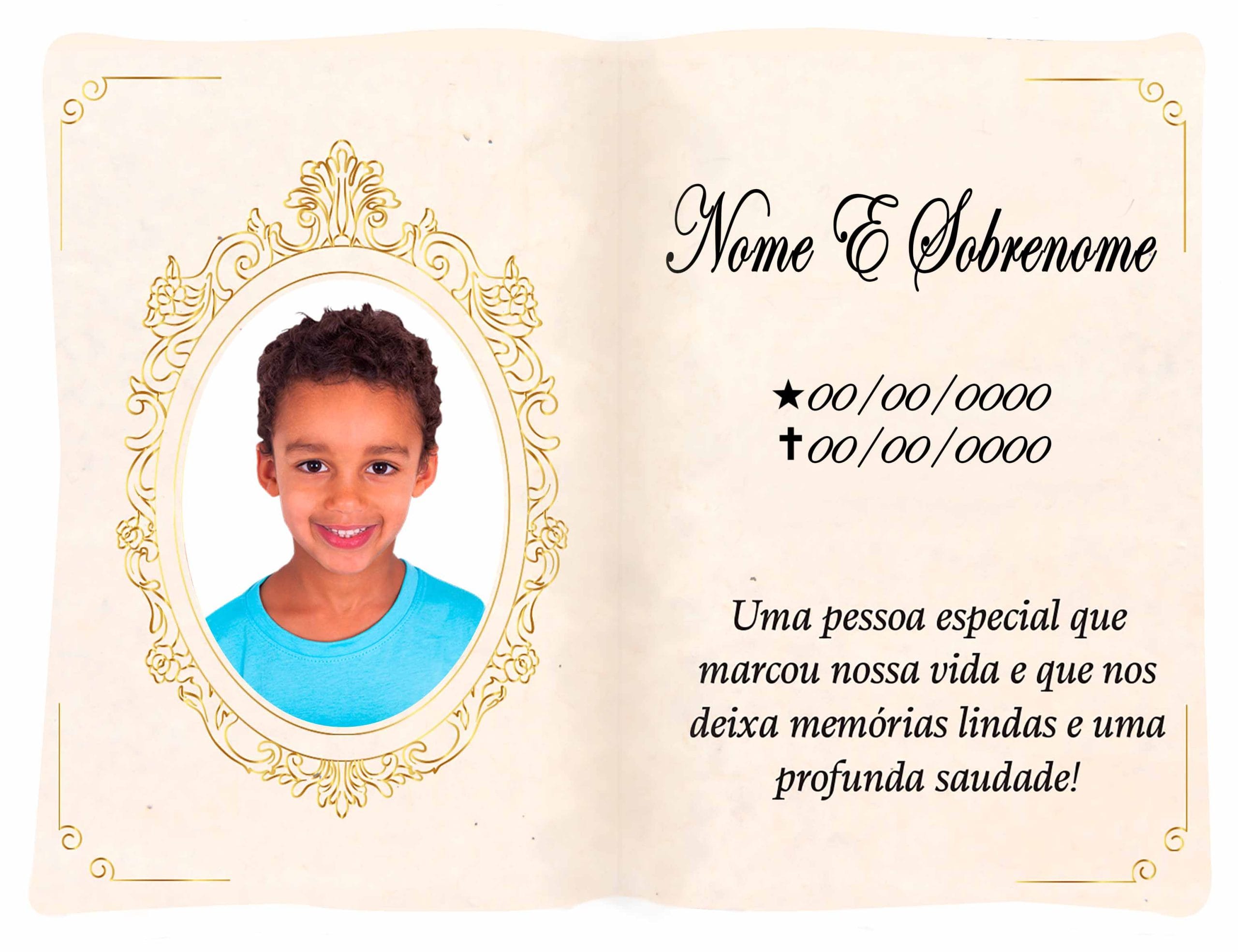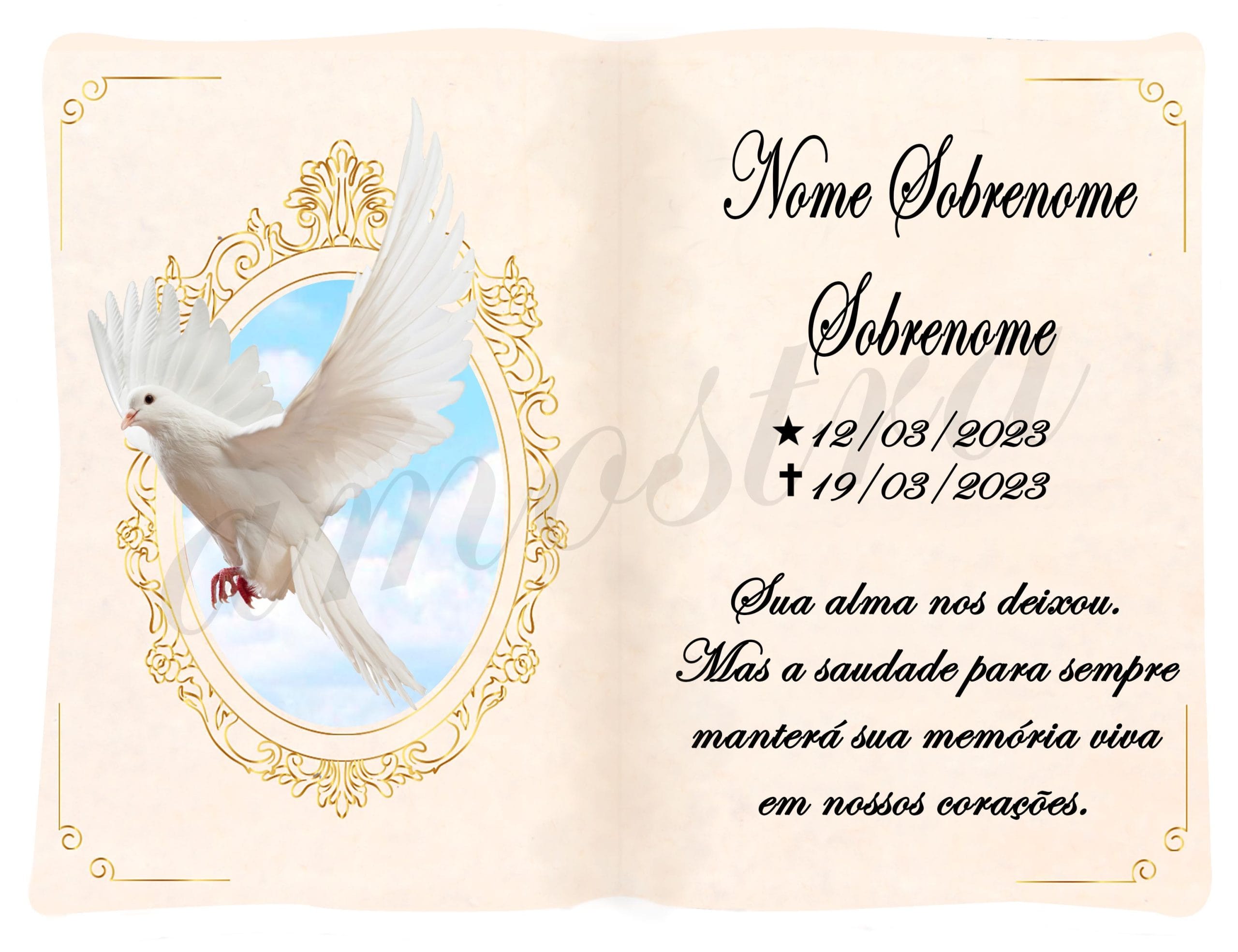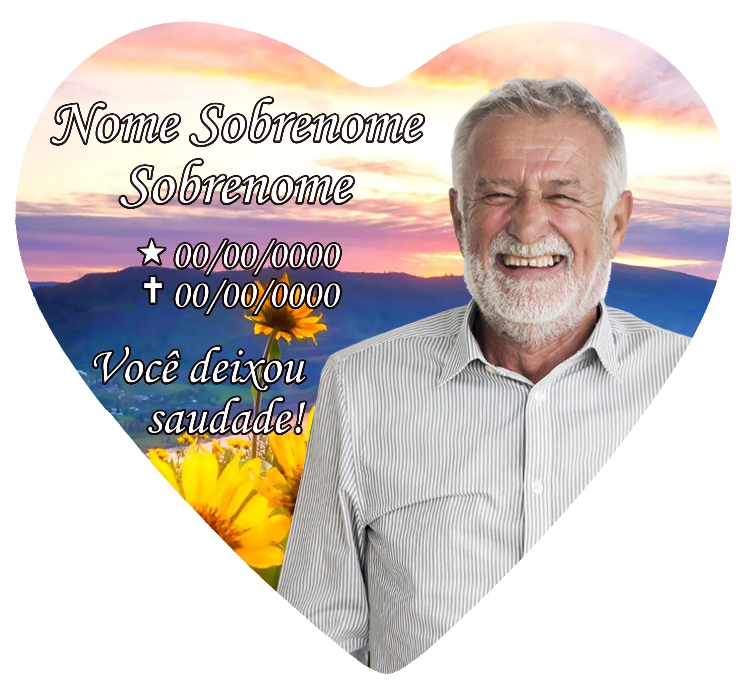 Depois de definir o modelo, basta nos enviar a foto, nome e sobrenome, datas de nascimento e falecimento, além de uma frase ou mensagem de homenagem. Você pode escolher um dos nossos modelos ou criar o seu próprio texto. Após isso, enviaremos uma amostra virtual para sua aprovação.