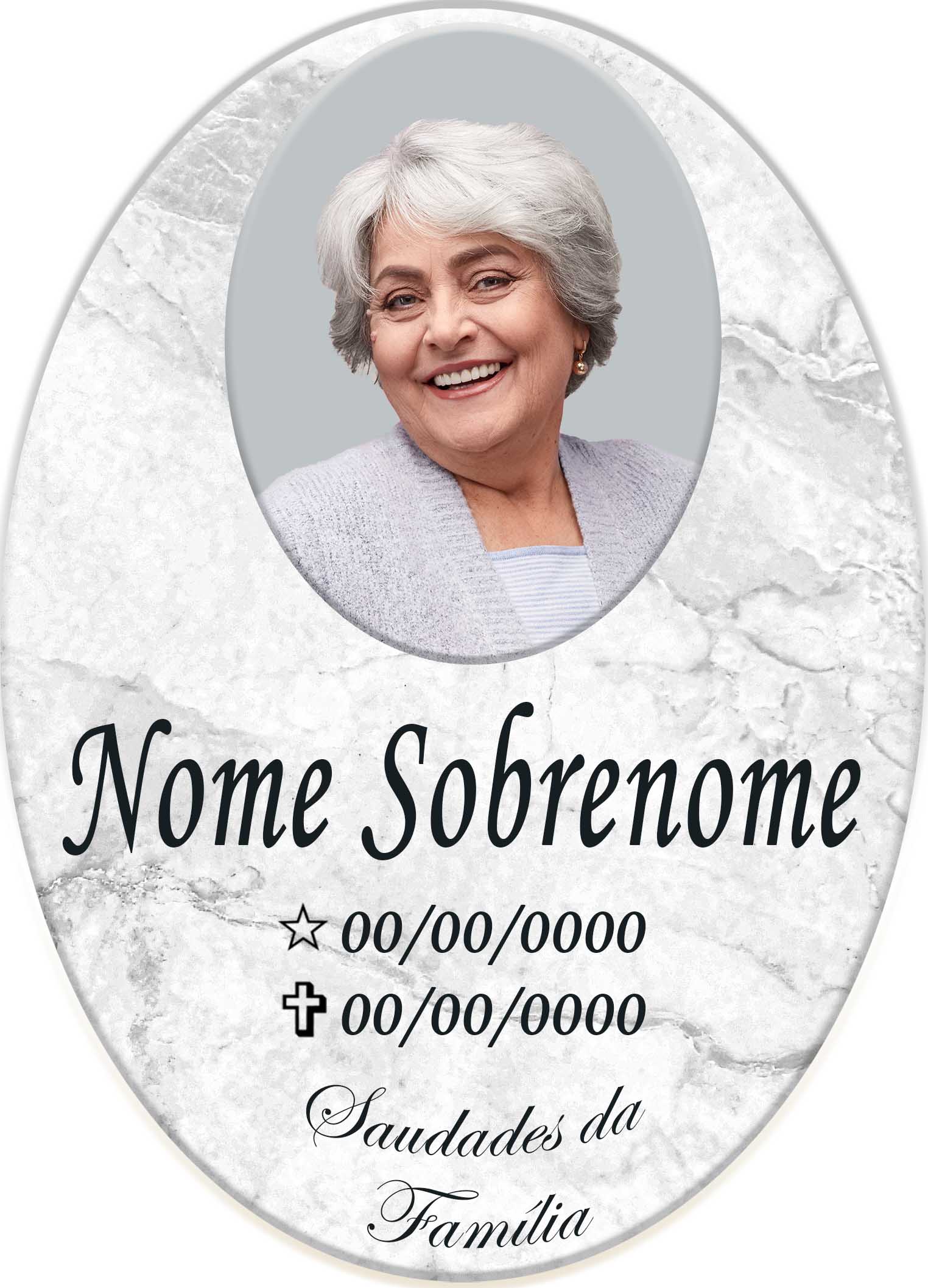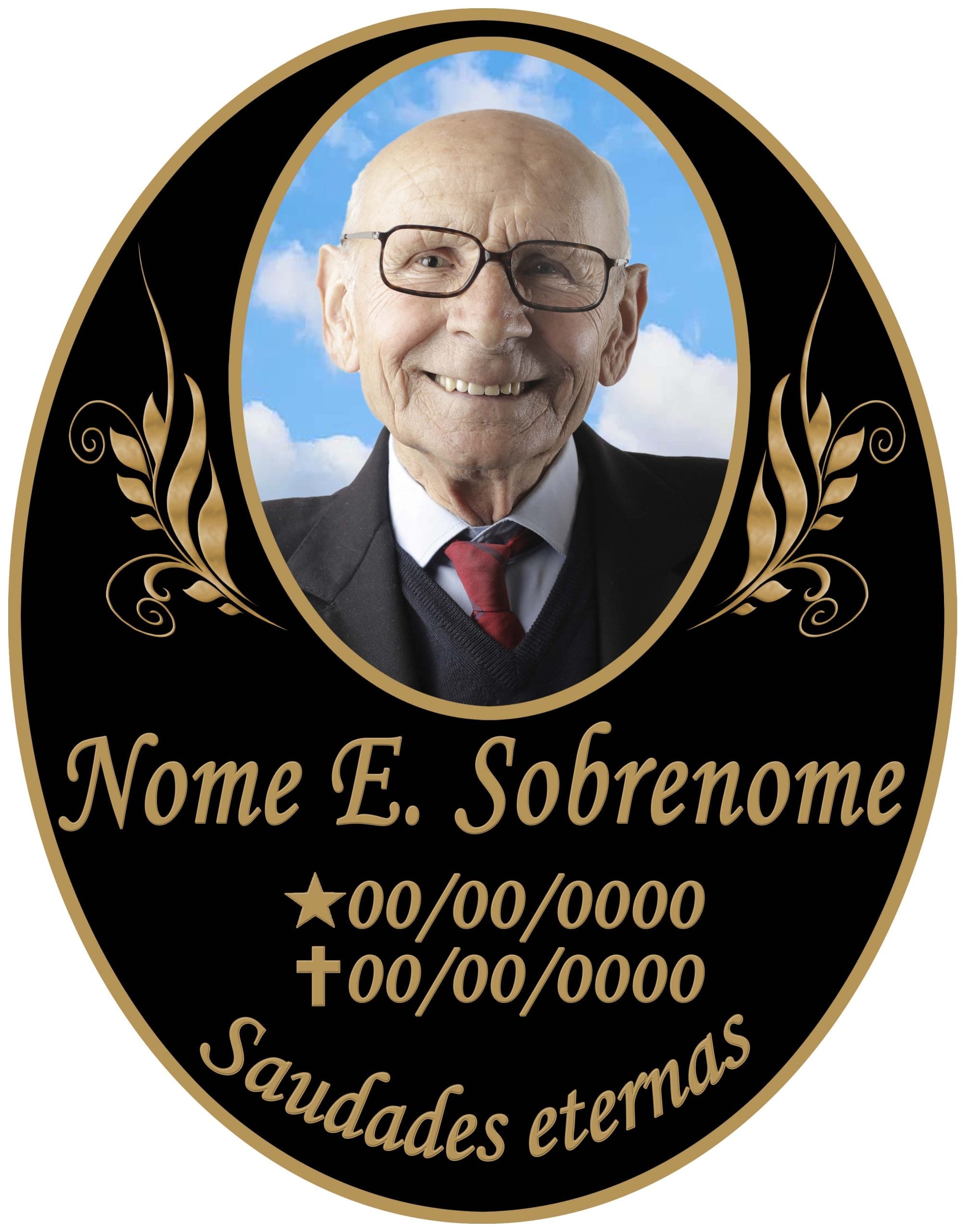 Elegante e atemporal, a placa oval traz um toque de sofisticação e respeito para a homenagem.